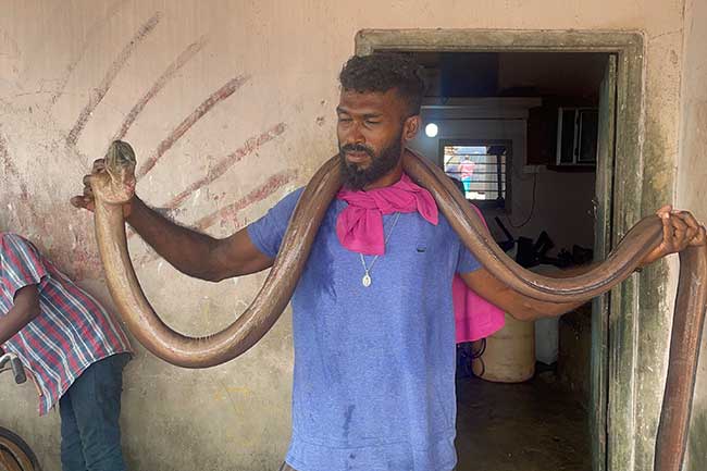 மன்னாரில் மீனவர் வலையில் சிக்கிய அபூர்வ பாம்பு மீன்