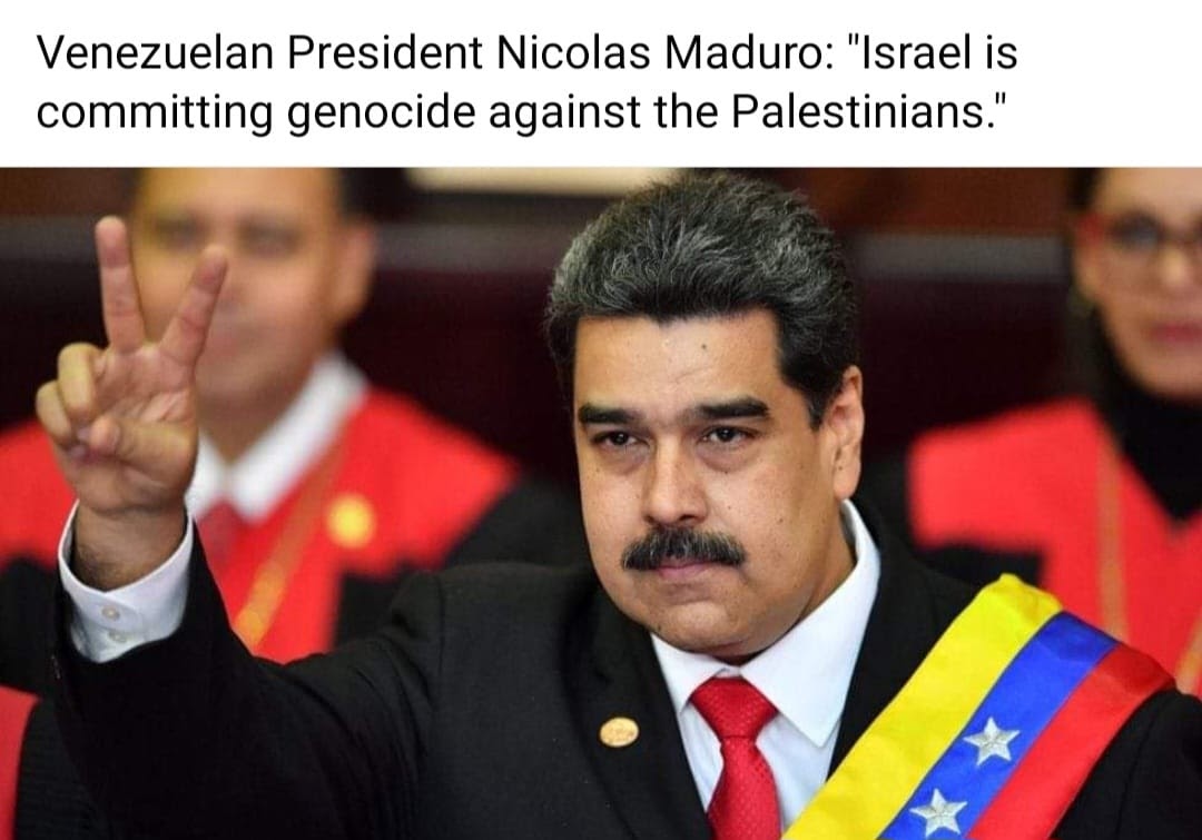 பாலஸ்தீனியர்களுக்கு எதிராக இஸ்ரேல் இனப்படுகொலை செய்து வருவதாக வெனிசுலா அதிபர் நிக்கோலஸ் மதுரோ அறிவித்துள்ளார்.
