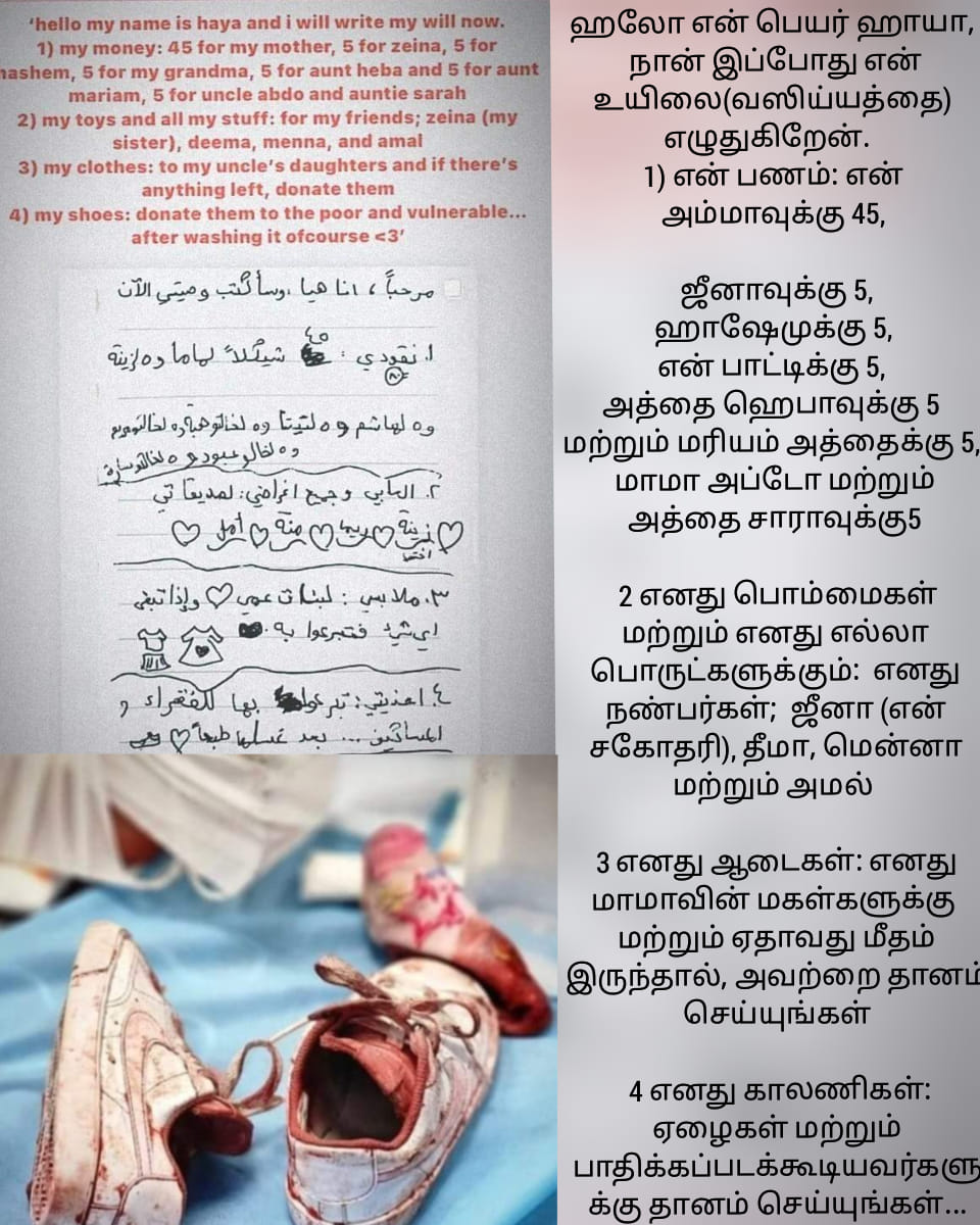 காஸா சிறுமியின் இறுதி உயில் (வஸிய்யத்) Post navigation அல்லாஹ்வின் மீது சத்தியம் செய்து, முன்னாள் இஸ்ரேலிய அதிபர் பெற்றுக்கொண்ட பலஸ்தீன் குடியுரிமைபாலஸ்தீனா, நாங்கள் உங்களுடன் நிற்கிறோம் – வெற்றியைக் கொண்டாட மறுத்த UFC சாம்பியன் இஸ்லாம் மகச்சேவ்