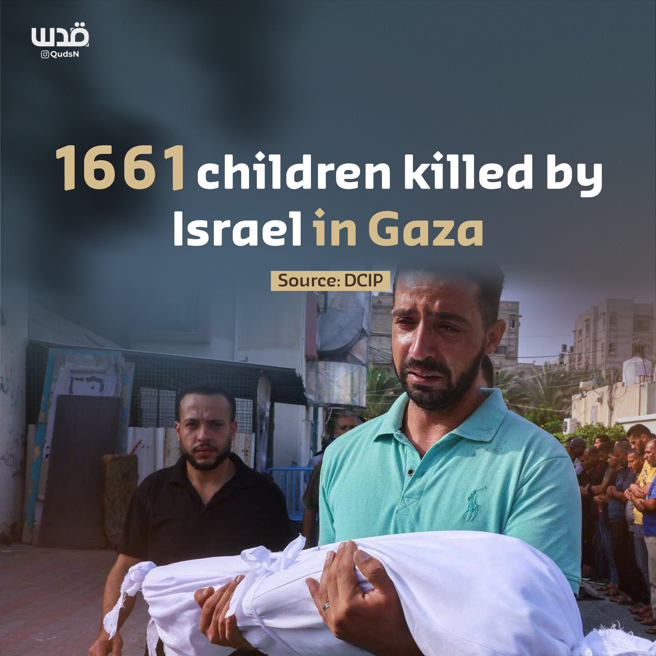 இம்மாதம் 8 ஆம் திகதியிலிருந்து, நேற்று 21 ஆம் திகதிவரை இஸ்ரேலிய ஆட்சியால் இனப்படுகொலை செய்யப்பட்ட காசா குழந்தைகளின் எண்ணிக்கை 1,661 ஆகும்.