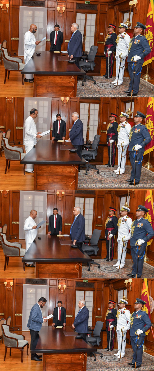 அமைச்சரவை அந்தஸ்துள்ள மூன்று அமைச்சர்கள் இன்று (23) முற்பகல் ஜனாதிபதி அலுவலகத்தில் ஜனாதிபதி ரணில் விக்ரமசிங்க முன்னிலையில் பதவிப்பிரமாணம் செய்துகொண்டனர்.
