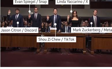 மெட்டா அதிபர் மட்டுமின்றி, டிக்டாக், ஸ்னாப், எக்ஸ் மற்றும் டிஸ்கார்ட் ஆகிய நிறுவனங்களின் தலைமை பொறுப்பில் உள்ளவர்கள் செனட் சபை விசாரணையில் பங்கேற்றனர்
