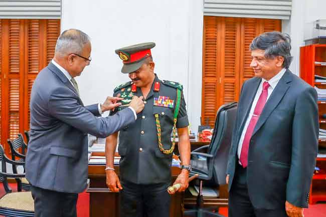 இராணுவ பரசூட் வீரராக தனது திறமையை வௌிக்காட்டிய இராணுவ தளபதி லெப்டினன் ஜெனரல் விக்கும் லியனகே நேற்று (02) ஜனாதிபதி அலுவலகத்தில் பாராட்டி, கௌரவிக்கப்பட்டார்.