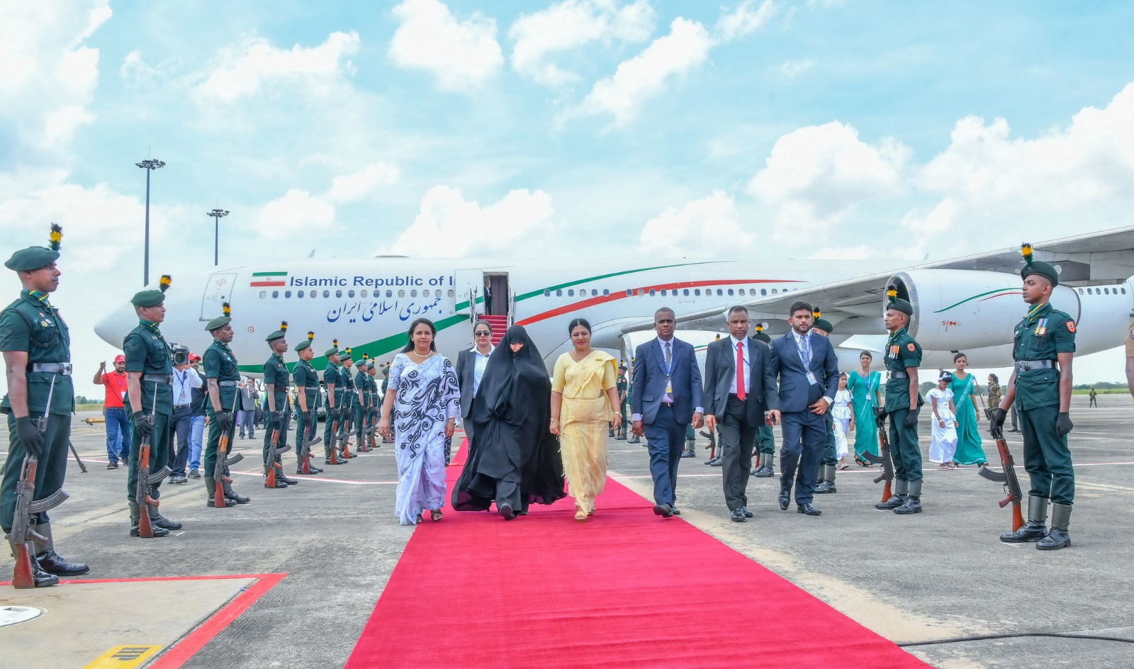 மனைவியுடன் இலங்கை வந்த, ஈரான் ஜனாதிபதிக்கு வெற்றிலை கொடுத்து, செங்கம்பளம் விரித்து வரவேற்பு – வெளிவிவகார அமைச்சர் அலி சப்ரியின் மனைவியும் பங்கேற்பு