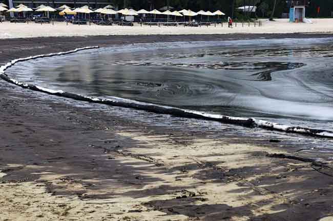 சிங்கப்பூரில் உள்ள எண்ணெய் முனையத்தில் ஏற்பட்ட எண்ணெய் கசிவுதான் இதற்குக் காரணம் என தெரிவிக்கப்பட்டுள்ளது.
