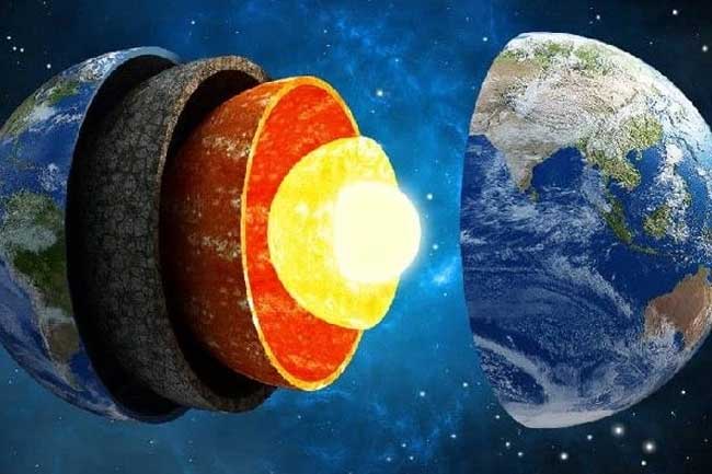 Crust, mantle, வெளிப்புற மையம் மற்றும் உள்புற மையம் ஆகிய 4 அடுக்குகளாக பூமி அமைத்துள்ளது.