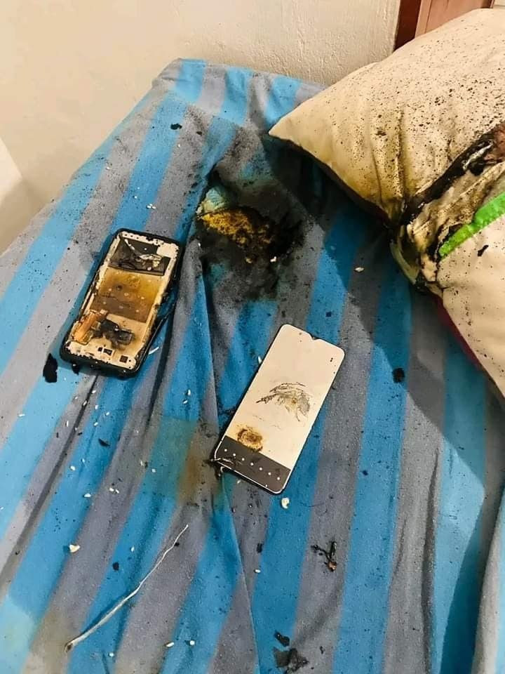 கையடக்க தொலைபேசியை அருகில் வைத்துக் கொண்டு உறங்கிய நபரின் கையடக்க தொலைபேசியே வெடித்து சிதறியுள்ளது.