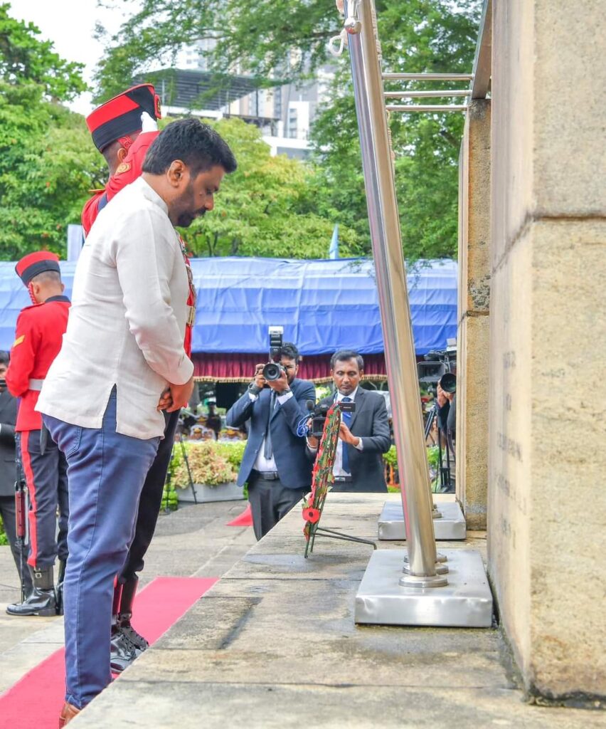 ஆயுதப்படையின் நினைவு தினம் – 2024 இனை முன்னிட்டு, இன்று (24) முற்பகல் கொழும்பு விகாரமஹாதேவி பூங்காவில் அமைந்துள்ள இராணுவ வீரர்களின் நினைவு தூபிக்கு அருகில் நடைபெற்ற அஞ்சலி செலுத்தும் நிகழ்வில் கலந்துகொண்டார். முதலாம் உலகப் போரில் இருந்து இன்று வரை தாய்நாட்டின் பாதுகாப்பிற்காக உயிர் தியாகம் செய்த சிப்பாய்களை நினைவுகூரும் முகமாக இலங்கை இரணுவ சேவையிலிருந்து ஓய்வுபெற்றோர் சங்கத்தினால் இராணுவத்தினர் ஒத்துழைப்புடன் வருடாந்தம் இந்நிகழ்வை ஏற்பாடு செய்யப்படுகிறது. சர்வமத வழிபாடுகளின் பின்னர் உயிர் தியாகம் செய்த வீரர்களை நினைவுகூரும் வகையில் இரண்டு நிமிட மௌன அஞ்சலி செலுத்தப்பட்டதுடன், இலங்கை இராணுவ சேவையிலிருந்து ஓய்வுபெற்றோர் சங்கத்தின் பிரதிநிதிகள் இராணுவ நினைவுதூபிக்கு மலர் அஞ்சலி செலுத்தினர். பாதுகாப்பு பிரதி அமைச்சர் மேஜர் ஜெனரல் (ஓய்வு) அருண ஜயசேகர, பாதுகாப்பு அமைச்சின் செயலாளர் எயார் வைஸ் மார்ஷல் (ஓய்வு) சம்பத் துய்யகொண்தா, பாதுகாப்புப் பதவிநிலை பிரதானி ஜெனரல் சவேந்திர சில்வா, இராணுவத் தளபதி லெப்டினன்ட் ஜெனரல் விக்கும் லியனகே, விமானப்படைத் தளபதி எயார் மார்ஷல் உதேனி ராஜபக்ஷ, கடற்படைத் தளபதி வைஸ் அட்மிரல் பிரியந்த பெரேரா, வெளிநாட்டுத் தூதுவர்கள், முப்படைகளின் சிரேஷ்ட அதிகாரிகள், இலங்கை இராணுவ சேவையிலுருந்து ஓய்வுபெற்ற அதிகாரிகள் சங்கத்தின் உறுப்பினர்கள், நாட்டுக்காக உயிர் நீத்த முப்படை வீரர்களின் குடும்பங்களின் உறவினர்கள் உள்ளிட்டோர் இந்நிகழ்வில் கலந்து கொண்டனர்.