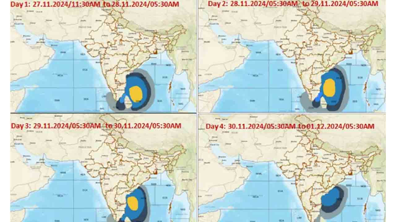 தென்மேற்கு வங்கக் கடலில் உருவாகியுள்ள ஆழ்ந்த காற்றழுத்த தாழ்வு மண்டலம், வடக்கு வடமேற்கில் நகர்ந்து சூறாவளி புயலாக வலுப்பெறும் என இந்திய வானிலை ஆய்வும் மையம் எதிர்வு கூறியுள்ளதாக இந்திய செய்திகள் தெரிவிக்கின்றன.தென்மேற்கு வங்கக் கடலில் உருவாகியுள்ள ஆழ்ந்த காற்றழுத்த தாழ்வு மண்டலம் வடக்கு மற்றும் வடமேற்கு நோக்கி நகர்ந்து வருகிறது. இன்று காலை 11.30 மணி நிலவரப்படி திருகோணமலையில் இருந்து கிழக்கே 110 கி.மீ. தொலைவிலும், நாகப்பட்டினத்திற்கு தென்கிழக்கே 350 கி.மீ. தொலைவிலும், புதுச்சேரிக்கு தென்கிழக்கே 530 கி.மீ. தொலைவிலும், சென்னைக்கு தெற்கு- தென்கிழக்கே 530 கி.மீ. தொலைவிலும் நிலை கொண்டுள்ளது. அடுத்த சில மணி நேரத்தில் (மாலை 5.30) மணிக்கு வடக்கு வடமேற்கில் நகர்ந்து சூறாவளி புயலாக வலுப்பெறும் என இந்திய வானிலை ஆய்வும் மையம் தெரிவித்துள்ளது.