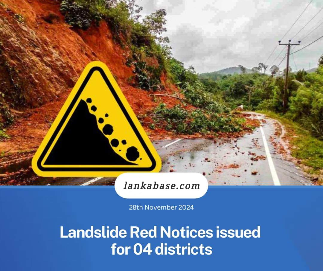 தேசிய கட்டிட ஆராய்ச்சி நிறுவனம் (NBRO) ஒன்பது (09) மாவட்டங்களுக்கு விடுக்கப்பட்ட மண்சரிவு எச்சரிக்கைகளை புதுப்பித்துள்ளது. இதன்படி NBRO) கண்டி, மாத்தளை மற்றும் நுவரெலியா மற்றும் கேகாலை மாவட்டங்களில் உள்ள பல பிரதேச செயலகங்களுக்கு சிவப்பு அறிவிப்புகளை வெளியிட்டுள்ளது. கடந்த 24 மணித்தியாலங்களில் 150 மில்லிமீற்றருக்கும் அதிகமான மழைவீழ்ச்சி இந்தப் பகுதிகளில் பதிவாகியுள்ளதால், மண்சரிவு, பாறை சரிவு மற்றும் நிலம் சரிவு போன்ற அபாயங்களைத் தவிர்ப்பதற்காக மக்கள் அவதானமாக இருக்குமாறும் பாதுகாப்பான இடங்களுக்கு வெளியேறுமாறும் அறிவுறுத்தப்பட்டுள்ளனர்.