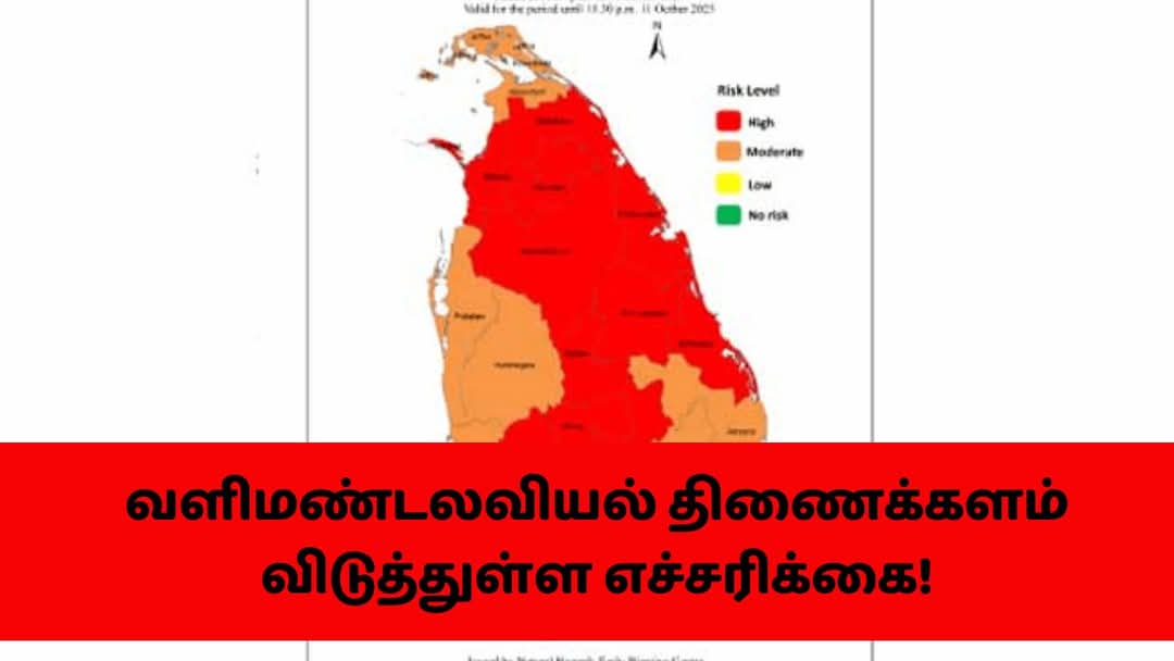 அதன்படி, மறு அறிவித்தல் நாட்டை சூழவுள்ள ஆழமான மற்றும் ஆழமற்ற கடற்பகுதிகளுக்குச் செல்ல வேண்டாம் என வளிமண்டலவியல் திணைக்களம் கடல்சார் மற்றும் மீனவ சமூகத்தை அறிவுறுத்தியுள்ளது. இதேவேளை, வடக்கு மாகாணத்தின் சில பகுதிகளில் 100 மில்லிமீற்றருக்கும் அதிகளவிலான பலத்த மழை பெய்யக் கூடும் என வளிமண்டலவியல் திணைக்களம் தெரிவித்துள்ளது. அந்த திணைக்களம் விடுத்துள்ள புதுப்பிக்கப்பட்ட அறிவித்தலில் இந்த விடயம் குறிப்பிடப்பட்டுள்ளது.