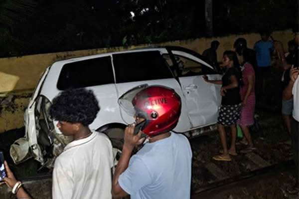 இன்று (03) இரவு இடம்பெற்ற இந்த விபத்தில் காயமடைந்த நால்வரில் இரண்டு சிறுவர்களும் அடங்குவதாக தெரிவிக்கப்படுகின்றது.காலியில் இருந்து மாத்தறை நோக்கி பயணித்த ரயிலுடன் கார் மோதியுள்ளதாக தெரிவிக்கப்படுகிறது.