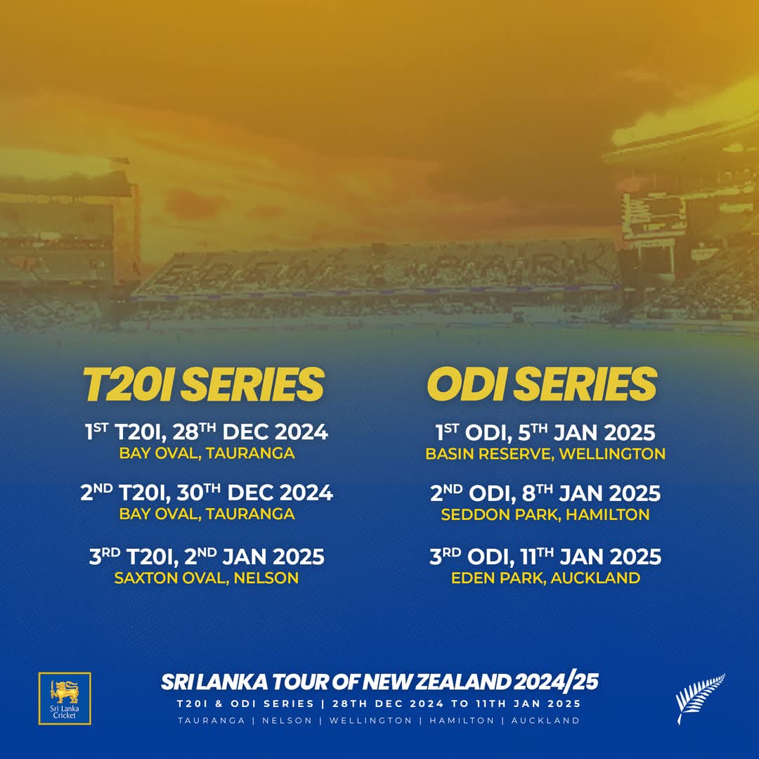 இலங்கை ஆண்கள் தேசிய அணி டி20 மற்றும் ஒருநாள் தொடரில் பங்கேற்க நியூசிலாந்திற்கு டிசம்பர்-ஜனவரி காலத்தில் சுற்றுப்பயணம் செய்யும். இந்த சுற்றுப்பயணத்தின் போது, இலங்கை நியூசிலாந்துக்கு எதிராக மூன்று ஒருநாள் மற்றும் மூன்று டி20 போட்டிகளில் விளையாடவுள்ளது.