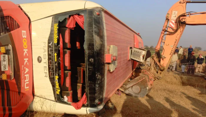 30க்கும் மேற்பட்டோர் பயணம் செய்த குறித்த பேருந்து, அட்டோக் மாவட்டத்தில் உள்ள நெடுஞ்சாலையில் சென்றுகொண்டிருந்தபோது, எதிர்பாராதவிதமாக வீதியோரம் கவிழ்ந்து விபத்துக்குள்ளானது.