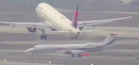 An investigation is underway after a Delta plane almost collided with a private jet at Los Angeles Airport.