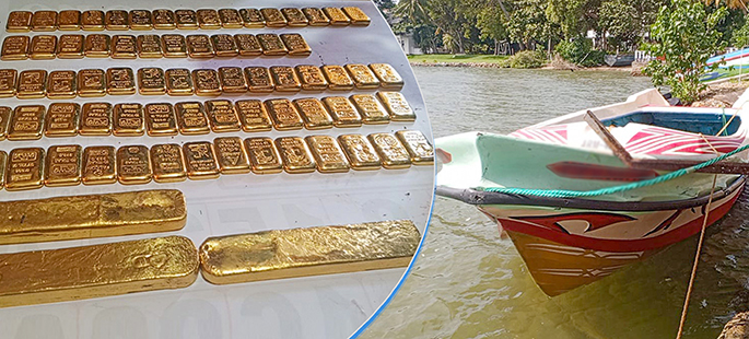 இதன்படி, பத்தலங்குண்டுவ தீவில் சந்தேகத்திற்கிடமான படகை இடைமறித்த கடற்படையினர், டிங்கி படகில் மறைத்து நாட்டிலிருந்து கடத்தி வரப்பட்ட சுமார் 11 கிலோ 300 கிராம் தங்கத்தை மீட்டுள்ளனர்.