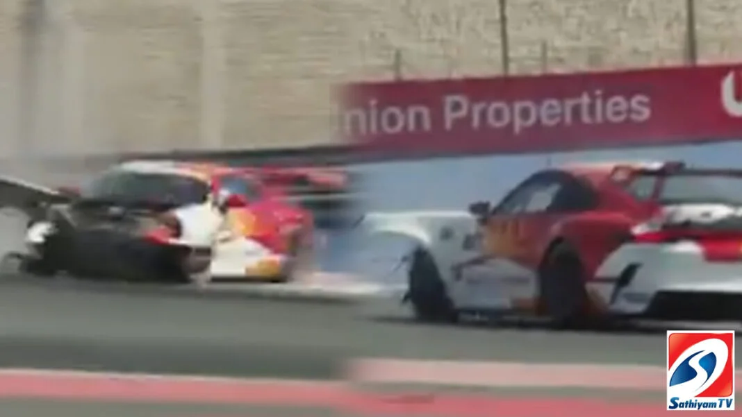 துபாயில் கார் ரேஸுக்கான பயிற்சியில் ஈடுபட்டிருந்த போது நடிகர் அஜித் குமாரின் கார் விபத்தில் சிக்கியது.