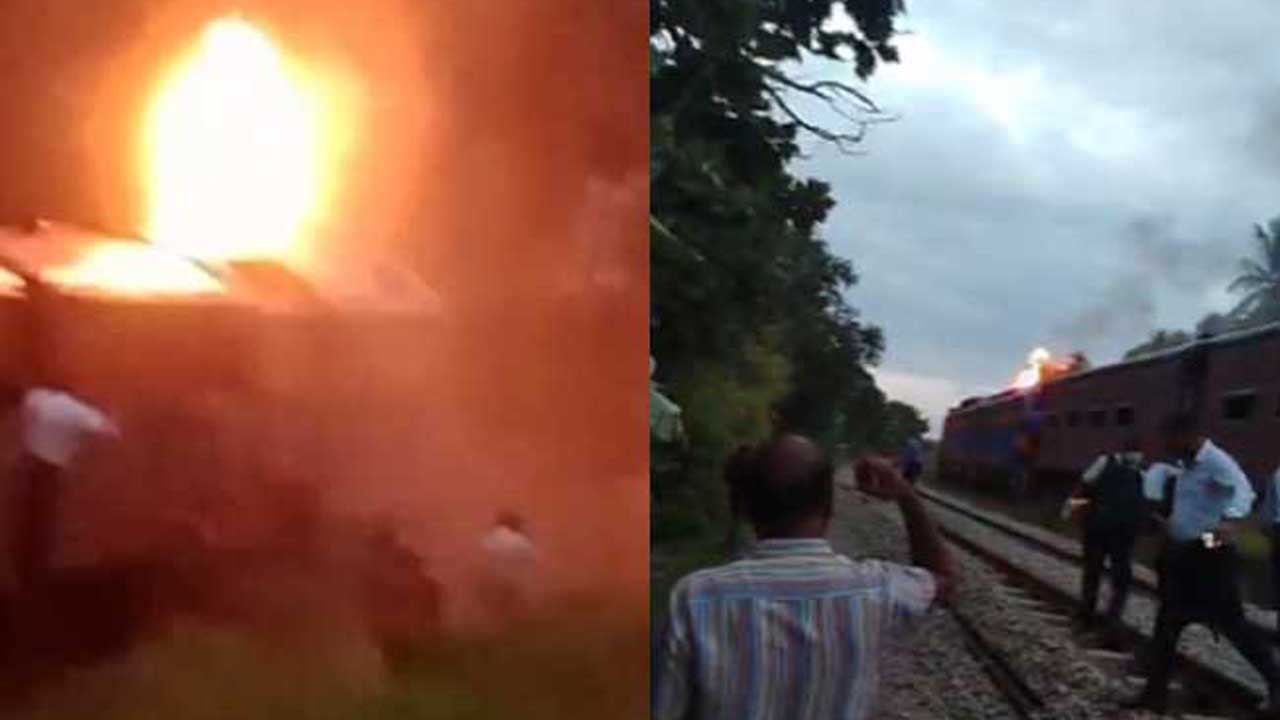 தொழில்நுட்பக் கோளாறு காரணமாக ரயில் இயந்திரம் தீப்பிடித்ததாகத் தெரிவிக்கப்படுகிறது.