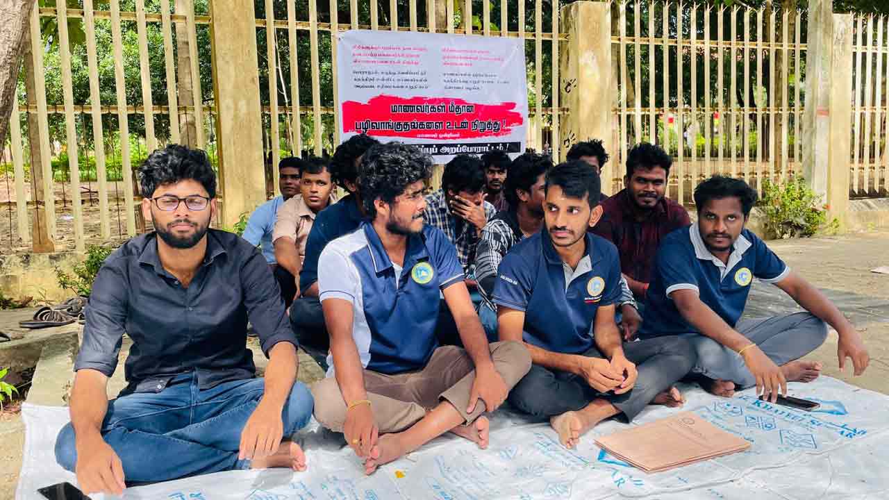 பல்கலைக்கழக முன்றலில் (24) முதல் மாணவ ஒன்றிய பிரதிநிதிகள் போராட்டத்தில் ஈடுபட்டுள்ளனர்.