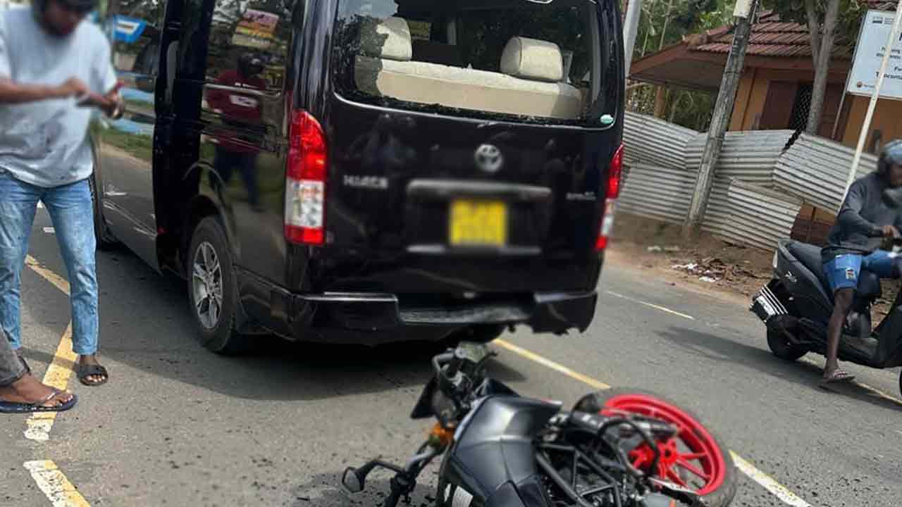 வேனின் பின்னால் பயணித்த மோட்டார் சைக்கிள் அதன் மீது மோதி இடம்பெற்ற இந்த விபத்தில் ஒருவர் காயம் அடைந்த நிலையில், வைத்தியசாலையில் அனுமதிக்கப்பட்டுள்ளார்.