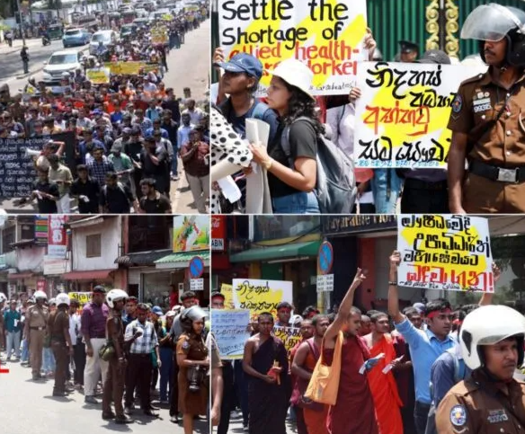 இலவசக் கல்வியில் இருந்து உருவான சுகாதார அறிவியல் பட்டதாரிகளின் எண்ணிக்கையைக் கட்டுப்படுத்தி, பட்டப்படிப்பு கடைகளில் இருந்து அரசாங்க சேவைக்குப் பட்டதாரிகளைச் சேர்க்கும் தேர்வு சதிகளை உடனடியாக நிறுத்து” என்ற தொனிப்பொருளில் பேராதனை பல்கலைக்கழகத்தின் இணை சுகாதார அறிவியல் பீட மாணவர் சங்கம் திங்கட்கிழமை (24) அன்று சுகாதார அமைச்சுக்கு முன்பாக ஆர்ப்பாட்டம் நடத்தியது.
