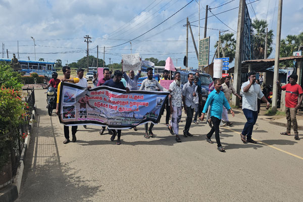 இந்த போராட்டமானது யாழ்ப்பாணம் நீரியல் வள திணைக்களத்திற்கு முன்னாள் ஆரம்பமாகிய நிலையில் பேரணியாக யாழ்ப்பாண நகர் பகுதி ஊடாக ஆளுநர் செயலகம் நோக்கி சென்று கொண்டிருக்கின்றது.