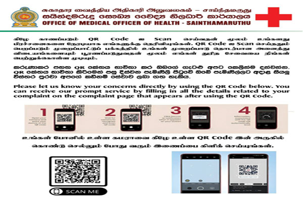 பொதுமக்கள் தங்களது சுகாதார சேவைகள் குறித்த முறைப்பாடுகளை தெரிவிப்பதற்காக QR குறியீட்டு முறைமை அறிமுகம் செய்து வைக்கப்பட்டுள்ளது.