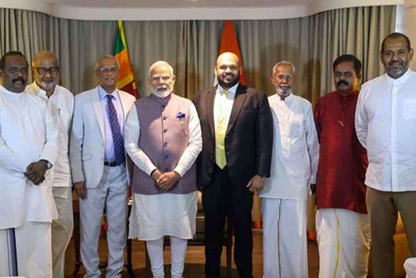 இலங்கைக்கு விஜயம் செய்துள்ள இந்திய பிரதமர் மோடி தமிழ் அரசியல் கட்சியின் தலைவர்களை சந்தித்து கலந்துரையாடியுள்ளார்.