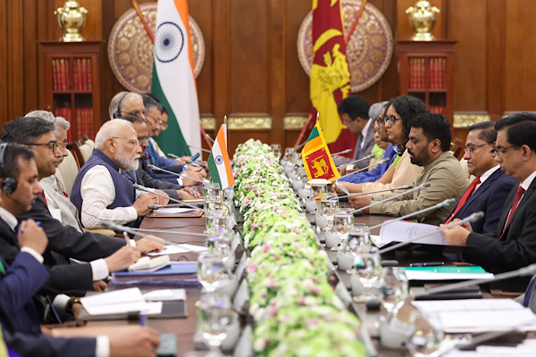 ஜனாதிபதி அநுர குமார திசாநாயக்கவுக்க மற்றும் இந்தியப் பிரதமர் ஸ்ரீ நரேந்திர மோடி ஆகியோருக்கு இடையிலான இருதரப்புப் பேச்சுவார்த்தைகள் நிறைவடைந்ததையடுத்து, இரு நாட்டுப் பிரதிநிதிகளுக்கும் இடையிலான கலந்துரையாடல் ஜனாதிபதி அலுவலகத்தில் இடம்பெற்றது.