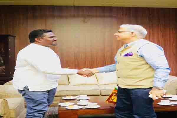 இந்திய உயர்ஸ்தானிகர் சந்தோஷ் ஜா, பெருந்தோட்ட மற்றும் சமூக உட்கட்டமைப்பு அமைச்சர் சமந்த வித்தியாரத்ன , பிரதியமைச்சர் சுந்தரலிங்கம் பிரதீப் ஆகியோரை, பெருந்தோட்ட மற்றும் சமூக உட்கட்டமைப்பு அமைச்சில், செவ்வாய்க்கிழமை (08) சந்தித்தார்.