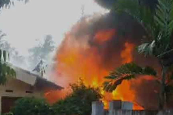 குடியிருப்பாளர்களால் வீட்டினுள் ஏற்றப்பட்டிருந்த விளக்கு கவிழ்ந்து இந்த தீ விபத்து ஏற்பட்டதாக கூறப்படுகிறது.