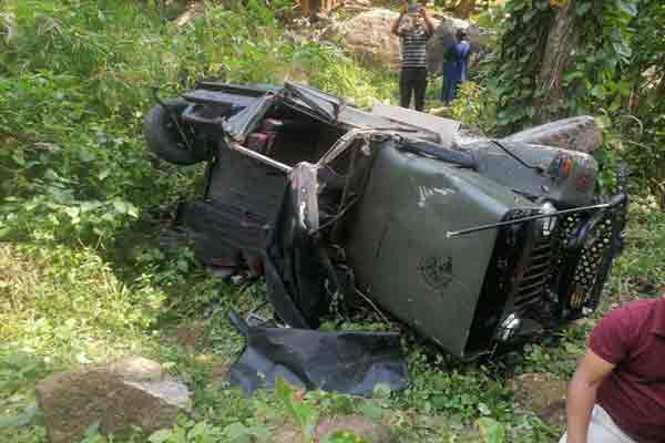 ஓர் அங்கவீனமான சிப்பாய் காரை ஓட்டிச் சென்று கொண்டிருந்தார், அது ஒரு பாறையிலிருந்து சுமார் 100 மீட்டர் பள்ளத்தில் விழுந்து விபத்துக்குள்ளானது.