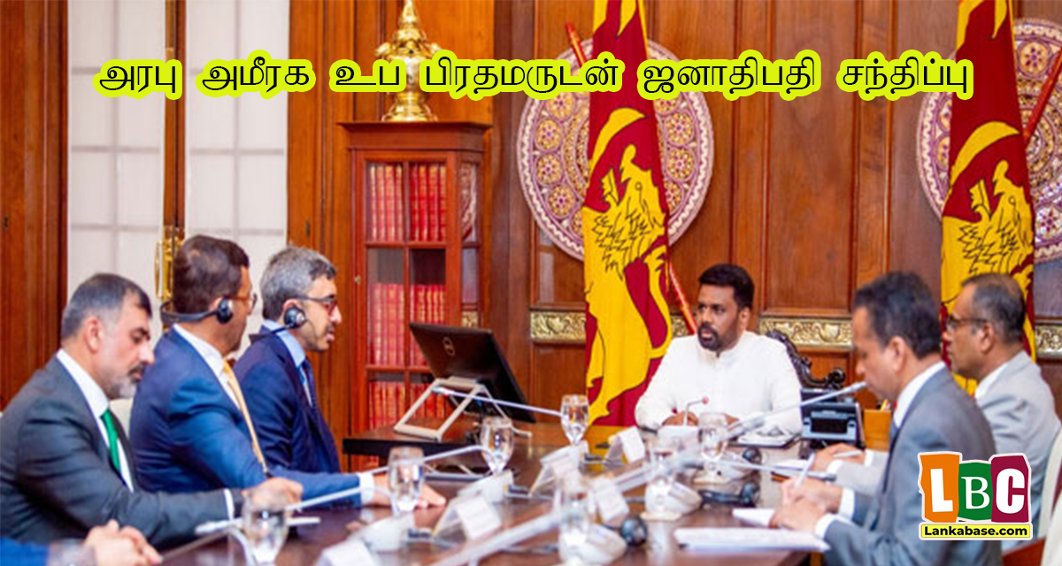 இலங்கைக்கு விஜயம் மேற்கொண்டிருக்கும் ஐக்கிய அரபு அமீரகத்தின் உப பிரதமரும் வெளியுறவு அமைச்சருமான ஷேக் அப்துல்லா பின் சயீட் அல் நஹியான் தலைமையிலான குழுவினர், இன்று (22) ஜனாதிபதி செயலகத்தில் ஜனாதிபதி அநுர குமார திசாநாயக்கவை சந்தித்து கலந்துரையாடியபோது இதனைத் தெரிவித்தனர்.