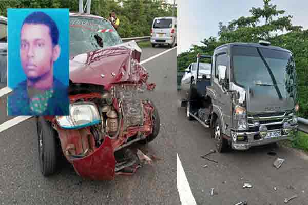 இந்நிலையில் அவர் தனது நண்பருக்கு தொலைபேசியில் அழைத்து தேவையான உதிரி பாகங்களை கொண்டு வரச் சொன்னதையடுத்து , உதிரி பாகங்களுடன் காரில் அந்த இடத்திற்கு சென்ற நண்பன் லொறியின் முன்பக்கத்திலிருந்து சிறிது தூரத்தில் காரை நிறுத்தி, லொறியின் ஓட்டுநர் முன் சக்கரத்தை பழுது பார்த்துக் கொண்டிருந்த போது, லொறியின் இடதுபுறத்தில் உள்ள அதிவேக நெடுஞ்சாலையின் பாதுகாப்பு வேலியில் அமர்ந்திருந்திருந்துள்ளார்.