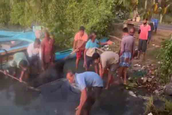இவ்வாறு மீனவர் ஒருவரினால் பிடிக்கப்பட்ட மீன் கரைக்கு இழுத்து வர முடியாமல் நீண்ட நேரமாக மீனவர்கள் கடும் சிரத்தைப்படாடதை அவதானிக்க முடிந்தது.