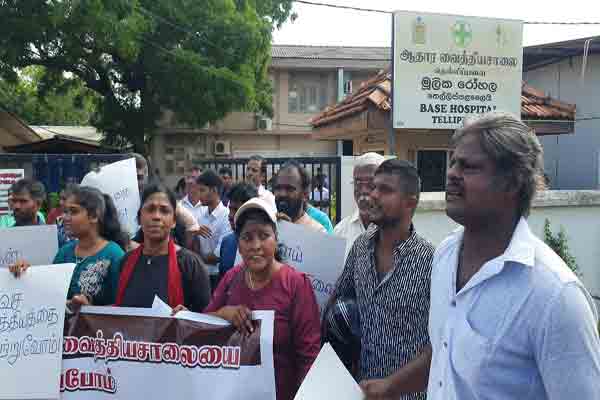 யாழ்ப்பாணம் தெல்லிப்பளையில் வைத்தியசாலைக்கு முன்பாக கவனயீர்ப்பு ஆர்ப்பாட்டம், வெள்ளிக்கிழமை (13) காலை முன்னெடுக்கப்பட்டது.