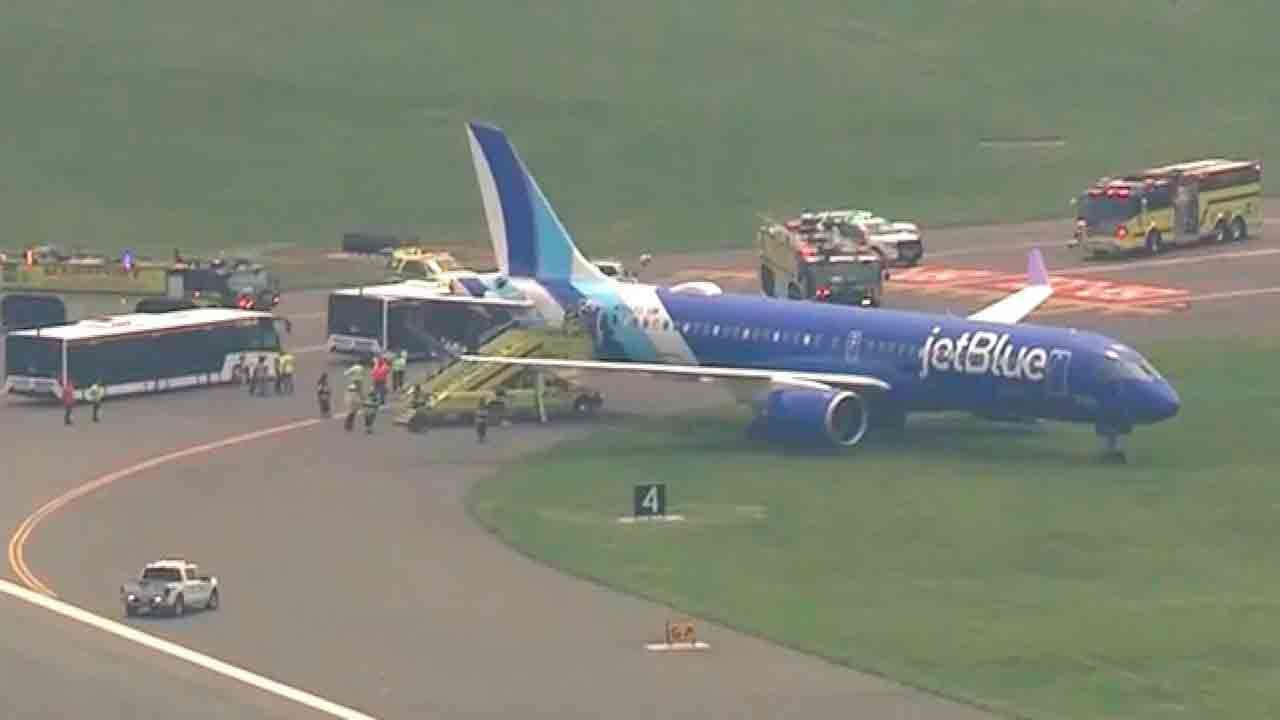 ஆனால் கட்டுப்பாட்டை விமானம் இழந்து ஓடுபாதையை விட்டு விலகி அங்கிருந்த புல்தரையில் சிறிது தூரம் ஓடியது. இதனையடுத்து அந்த விமானம் நிறுத்தப்பட்டது.