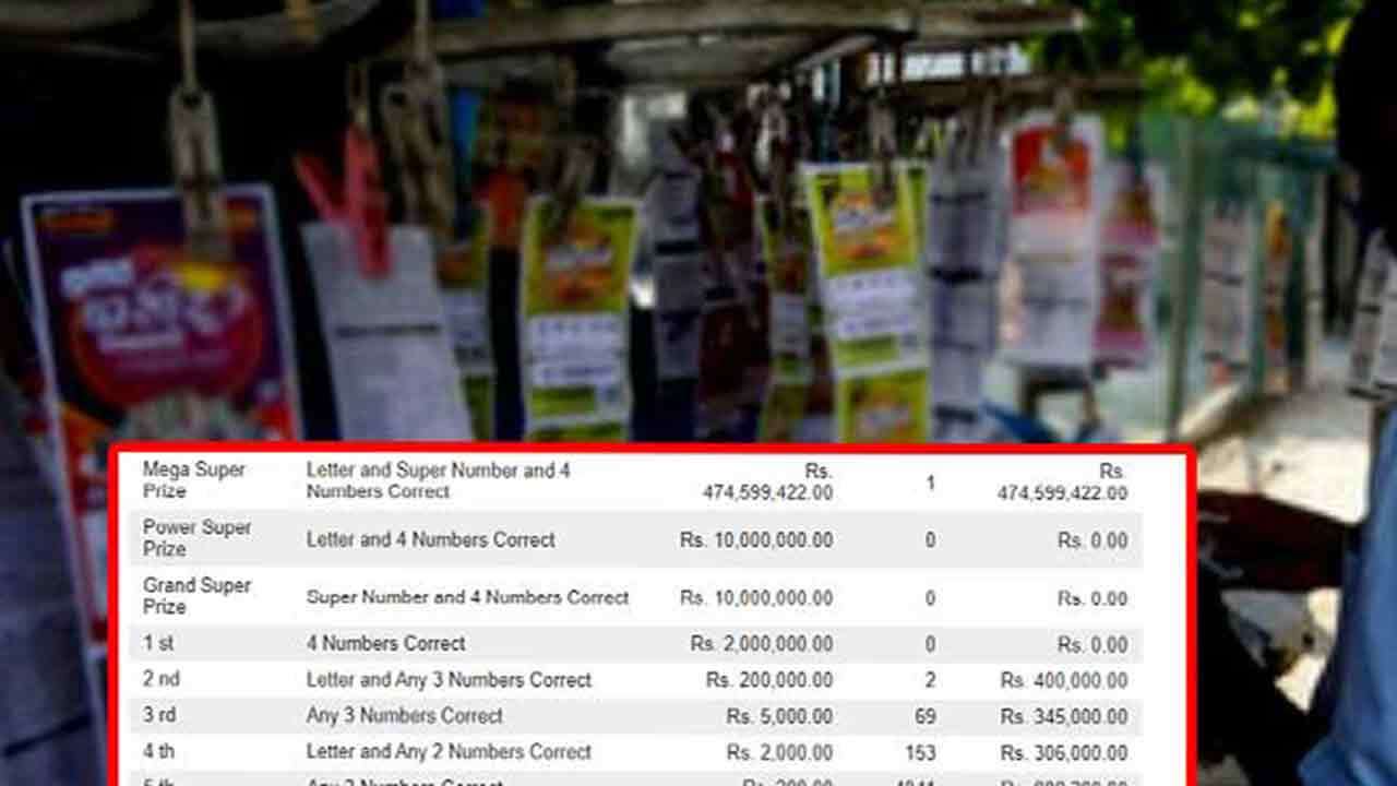 தேசிய லொத்தர் சபையின் மெகா பவர் அதிஷ்ட இலாபச்சீட்டின் 2210 ஆவது குலுக்கலில் சூப்பர் பரிசாக வழங்கப்பட்ட 474,599,422 ரூபா பரிசுத் தொகையே இவ்வாறு வெற்றி பெறப்பட்டுள்ளது.