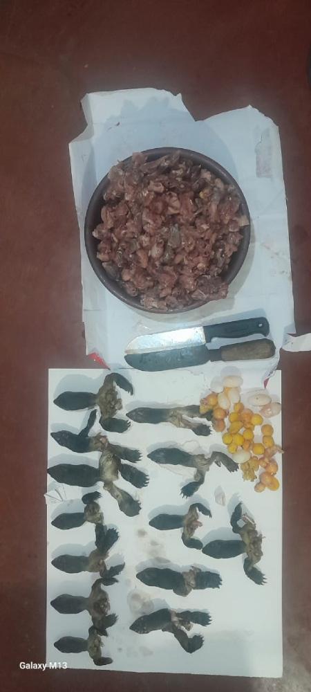 வனவிலங்கு அதிகாரிகள் செவ்வாய்க்கிழமை (24) பிற்பகல் நடத்திய சோதனையின் போது இவர்கள் கைது செய்யப்பட்டனர், சம்பவ இடத்தில் ஆமை இறைச்சி, கால்கள் மற்றும் முட்டைகளையும் அவர்கள் கைப்பற்றினர்.