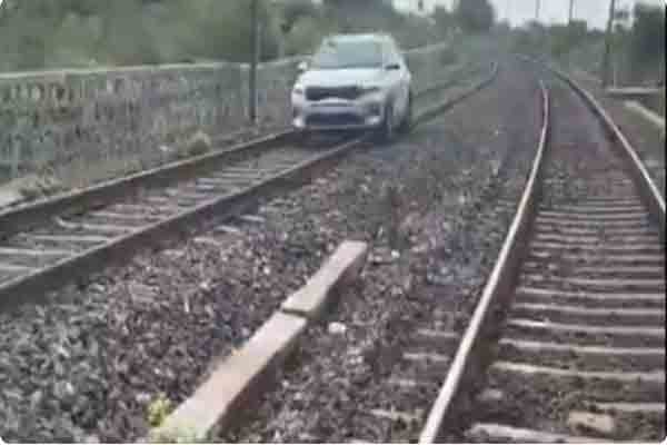 தண்டவாளம் மீது இளம்பெண் ஒருவர் காரை ஓட்டிச் சென்றதால் 45 நிமிடம் ரயில் போக்குவரத்து பாதிக்கப்பட்டது. இந்த சம்பவம், தெலங்கானா மாநிலம் ரங்கா ரெட்டி மாவட்டத்தில் இடம்பெற்றுள்ளது.