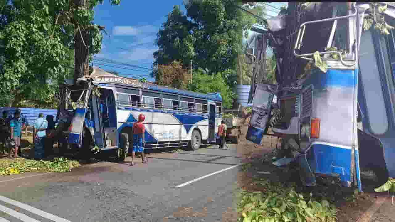 இன்று காலை (30) மட்டக்களப்பு காத்தான்குடி பொலிஸ் பிரிவுக்குட்பட்ட கிரான்குளம் பகுதியில் பேருந்து ஒன்று வீதியை விட்டு விலகி மரமொன்றுடன் மோதி இவ்வாறு விபத்துக்குள்ளாகியுள்ளது.