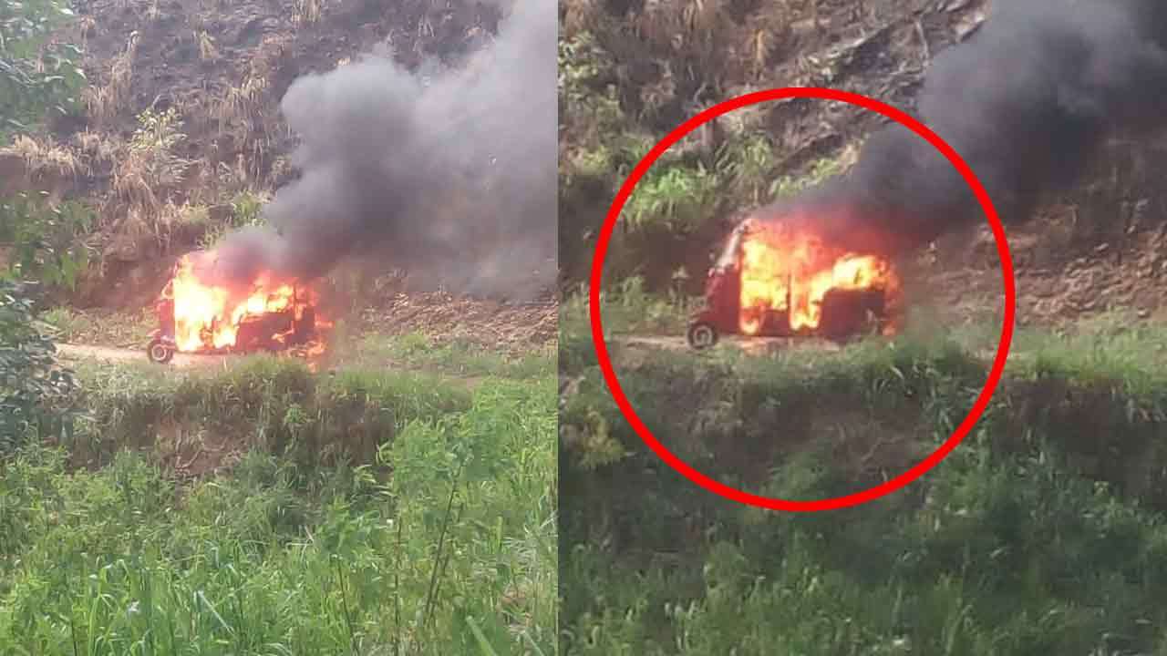 திடீரென பற்றி எரிந்த முச்சக்கரவண்டி